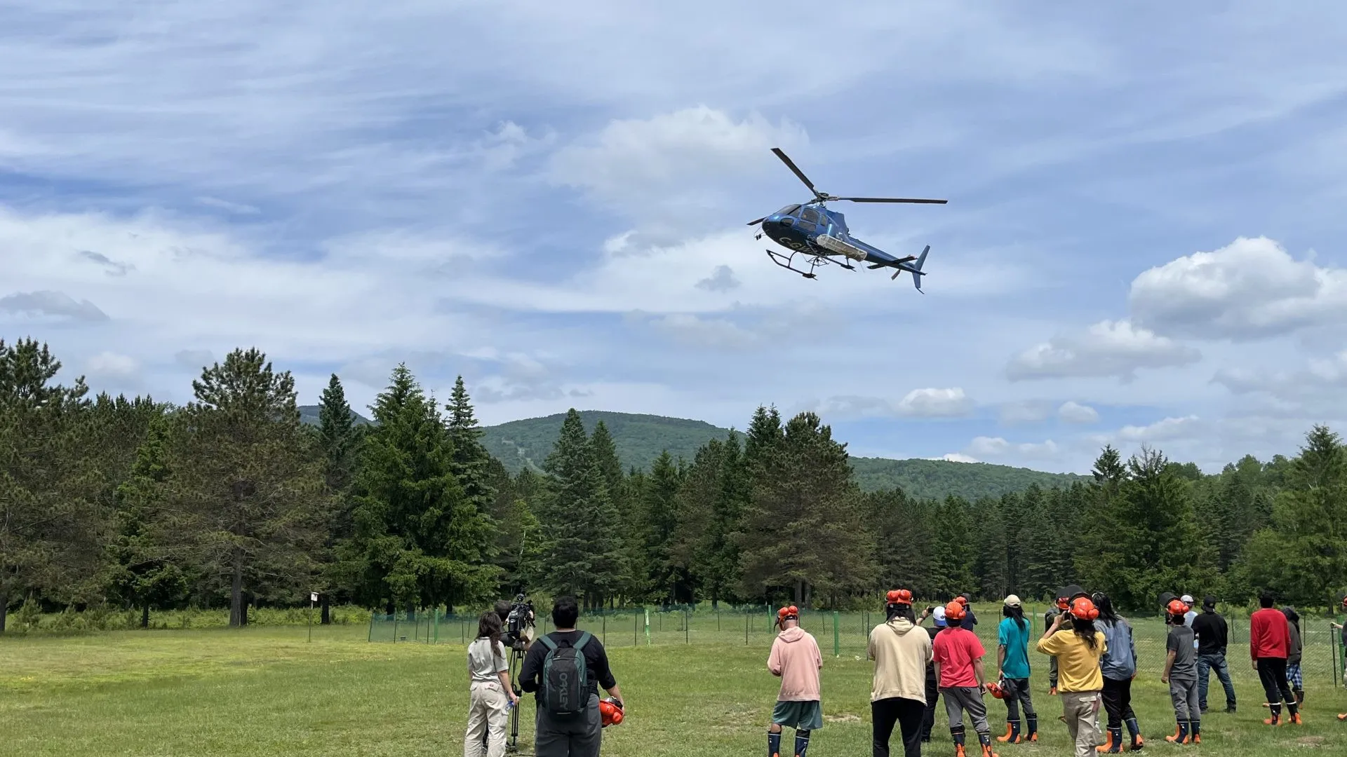 Une partie de la communauté du Lac-Rapide qui a dernièrement dû être évacuée a souhaite venir en aide à la SOPFEU. Lors de la formation, ils ont assisté à un entrainement d’embarquement ou débarquement en vol stationnaire. (Photo L’info du Nord – Laureen Peers)