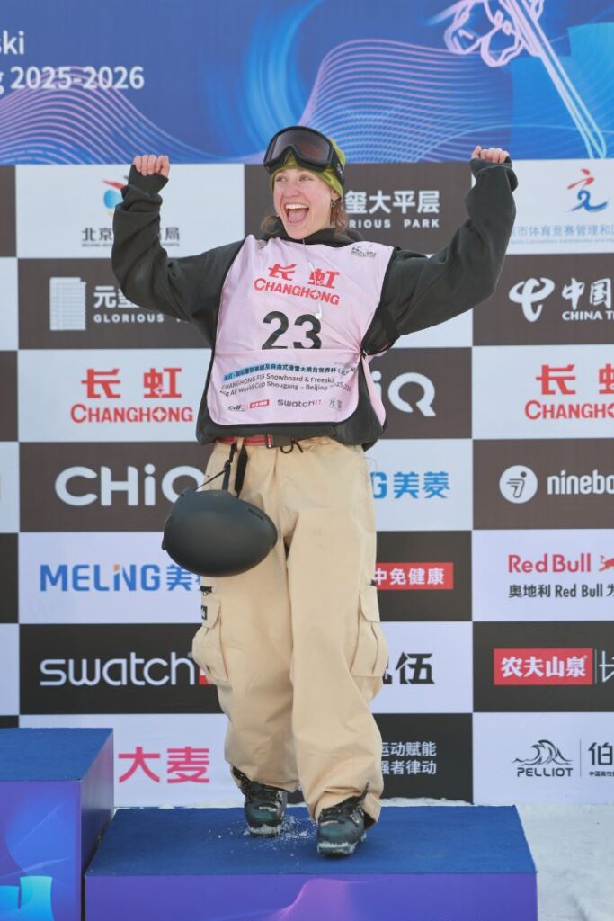 En effet, la jeune skieuse de 21 ans avait, à sa toute première Coupe du monde de grand saut à vie, a pris le second rang à Secret Garden en Chine. C’était à la fin du mois de novembre.