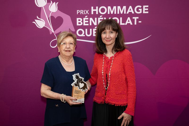 Lisette Pronovost Gauthier reçoit le prix Hommage bénévolat-Québec de la part de la sous-ministre de l’Emploi et de la Solidarité sociale, Annick Laberge. / Photo: Frédéric Lavoie