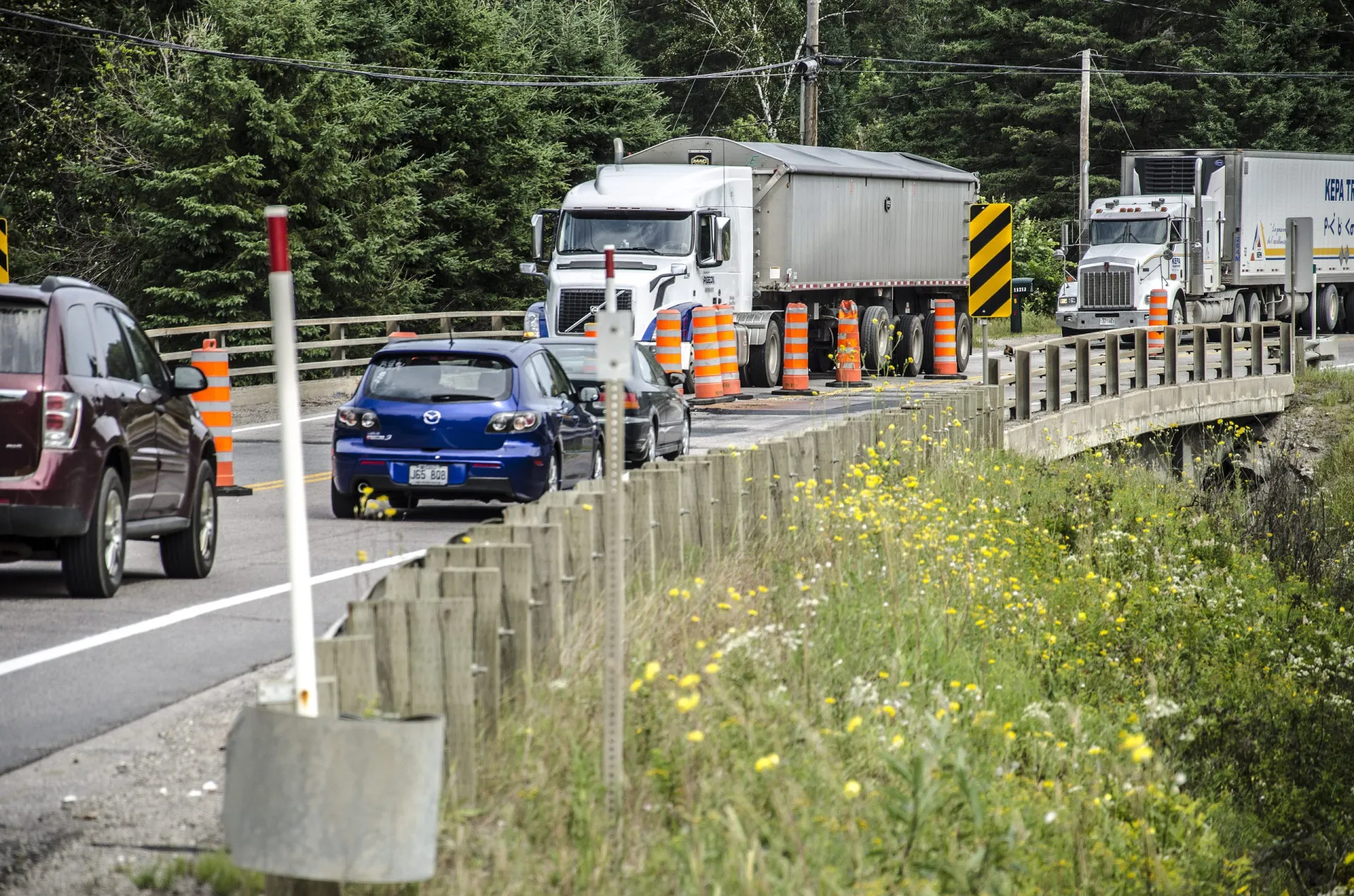 « Par ailleurs, le Ministère poursuit simultanément les études d’avant-projet définitif pour les lots 2 et 3 afin que l’ensemble de l’élargissement de la route 117 soit réalisé d’ici 2027. De plus, la mise en place du plan d’intervention sur la route 117 entre Labelle et Mont-Laurier progresse afin d’améliorer la sécurité sur l’ensemble de celle-ci. Parmi les travaux réalisés en 2020 sur cet axe se trouvent la correction de l’inclinaison de la route au kilomètre 148 et celle de la dépression aux approches du pont Ouellet, à Labelle. En mai 2021, le Ministère a aussi réalisé la pose de bandes rugueuses médianes, entre Labelle et Mont-Laurier. »