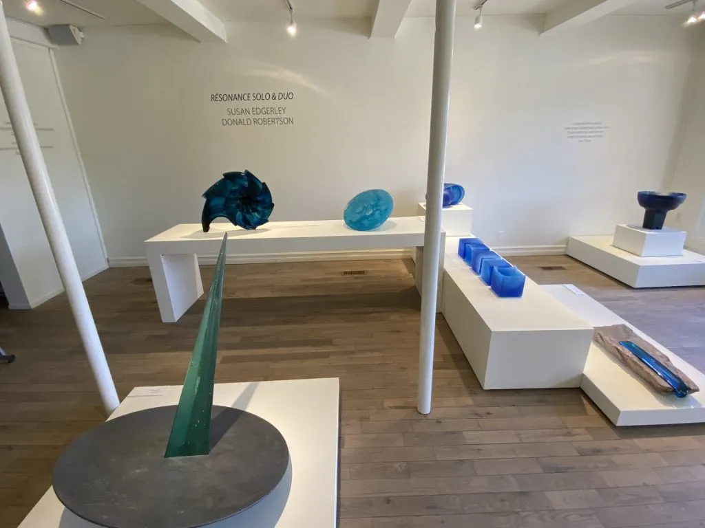 Alors que l’exposition de Suzanne FerlandL met de l’avant la violence faite aux femmes, on retrouve au premier étage du Centre d’exposition, Résonance solo & Duo mettant en évidence les œuvres des sculpteurs de verre Susan Edgerley et Donal Robertson que le public pourra rencontrer le 20 avril au Centre d’exposition. « Il y a une complémentarité avec les œuvres d’un couple qui mettent de l’avant l’alchimie de l’amour », mentionne la directrice du Centre d’exposition de Val-David, Manon Regimbald.