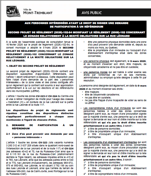 Avis public – Mont-Tremblant