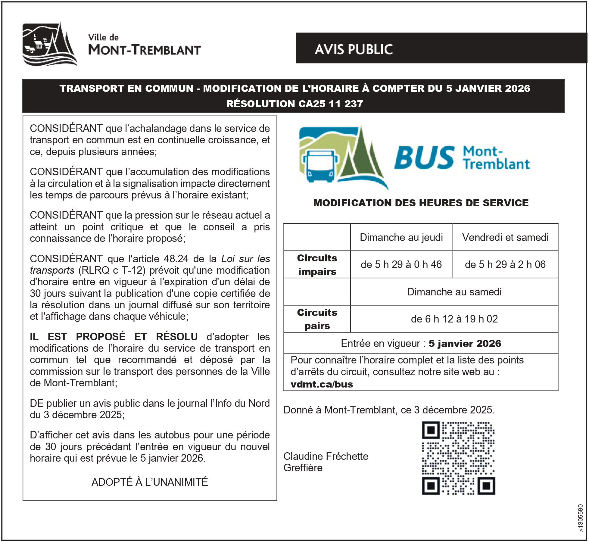 Avis public – Ville de Mont-Tremblant