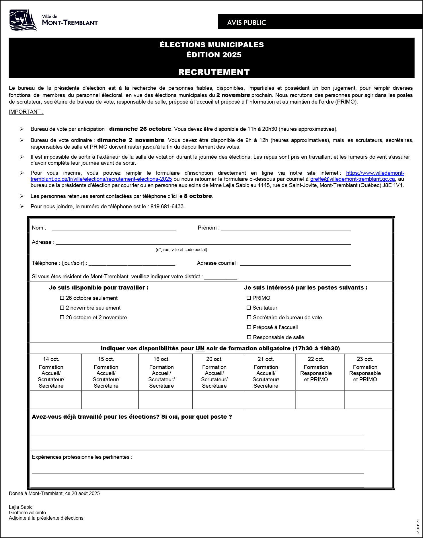 Avis public – Ville de Mont-Tremblant