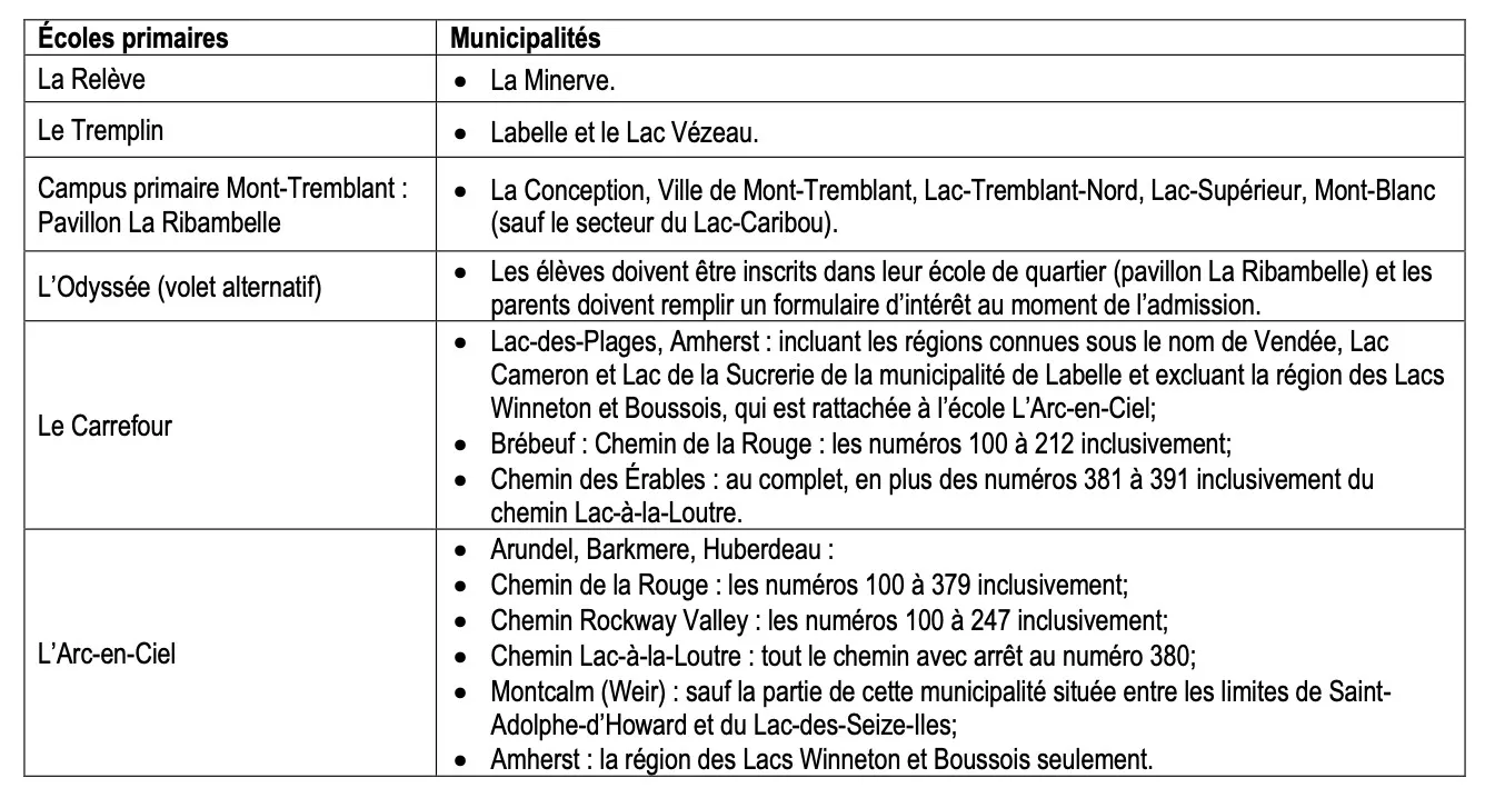 INFORMATION : Pour un complément d’information, vous pouvez communiquer avec l’école de votre quartier ou consulter le